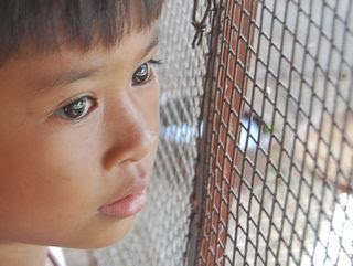 ボーイズタウンでウサギを見つめるジョリーナの瞳。