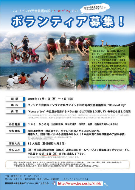 申し込み:(社)青年海外協力協会(JOCA)近畿支部のHP(http://www.joca.or.jp/kinki)から