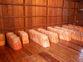 こどもたち一人一人に、ノートやエンピツ、消しゴムなどの学用品をセットにしたものを渡しました。