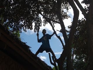 何か屋根がうるさい、と思ったらジェイソンが屋根に上って枝打ちをしていました。