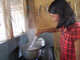 フィリピンの伝統的な「祭りの後の食事」である「チキンおかゆ」をつくってくれました。