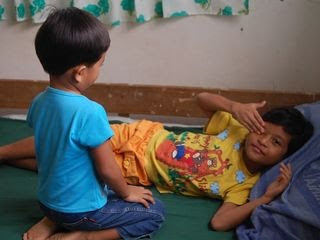 特にそうする指示があったわけでもないのですが、大きい子が小さい子を抱きかかえたり、