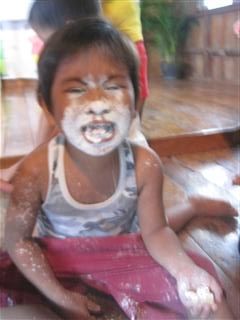 ぐるぐるバットで目が回った状態で、小麦粉の中に隠された飴をさがすという荒業。