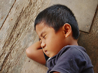 「お昼寝しない子はおやつ抜き!」と言われて、無理やり寝ようとするジェレミー。