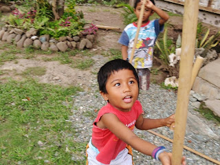ジェレミーがやってきて、「手伝う!」と言って竹で遊んでいます。ああ、幸せ。