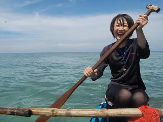 ユウさんは今日は初のサンゴ礁でのシュノーケリングに挑戦。