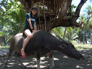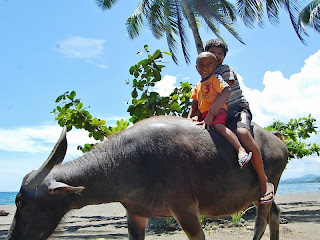きのうのウラワビーチでは、久々に水牛に乗って遊びました。