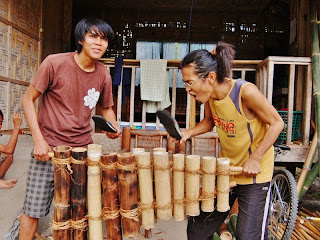 切りそろえた竹は、並べてマニラ麻の荒縄で縛って固定することにしました。