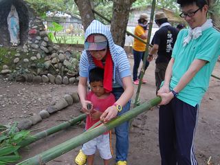 アリにかまれたり、割れた竹で手を切ったりしながらも、なんとか竹を入手!何事も経験です。