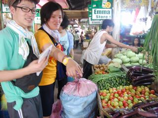 敢えてスーパーではなく、市場で、地元のおばさんたちと交流しながら買い物をしました。