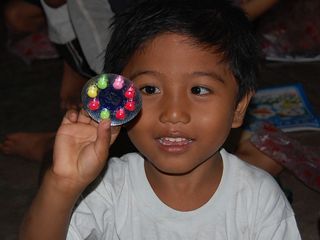 と言って、こどもたちに配りました。小さい子たちは信じたかな?