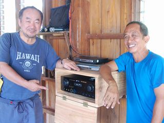 ん?何を作っているのかな?と覗いてみると、さっそくフィデルがアンプ置き場を作っていました。