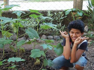 私の部屋の裏にこどもたちが植えたオクラがぐんぐん伸びています!
