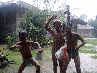 こういうときの「外での水浴び」はこどもたちの隠れた楽しみです。
