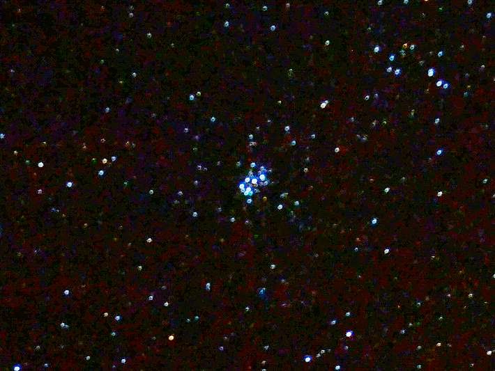 そしてこちらの写真!これが有名な「すばる」、別名プレアデス星団です。