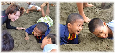 その後,家を作ろうということになりみんなで砂のトイレや,お風呂,寝室などを作りました^^