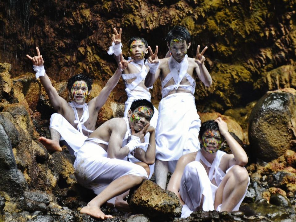 こどもたちの衣装は白塗りに布をまとった、まさに「前衛舞踏」スタイル!