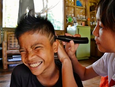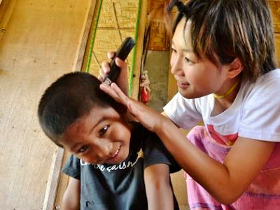 こちらではユウさんがミニバリカンを使って、こどもたちの髪に模様を入れています。