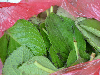 聞いてみたら「カラボ」という葉っぱだそうで、こうやって絞ったものが、