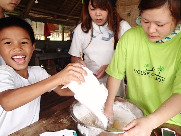 10日ほど滞在していた摂南の学生たちが日本に帰る前に、こどもたちにお菓子を作ってくれました。