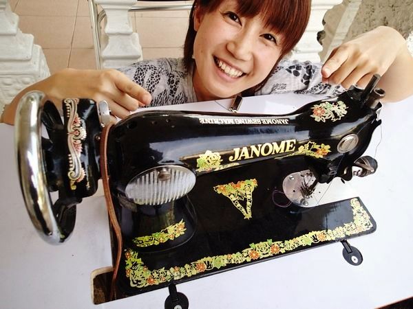 路上で売られていたこの足踏みミシン、なんと、「ジャノメ」!日本製です!