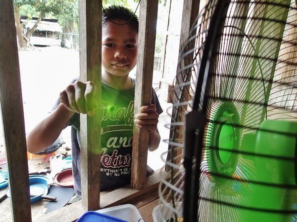 竹トンボを扇風機に向けるとめちゃくちゃ回転することを発見したジュンジュン。