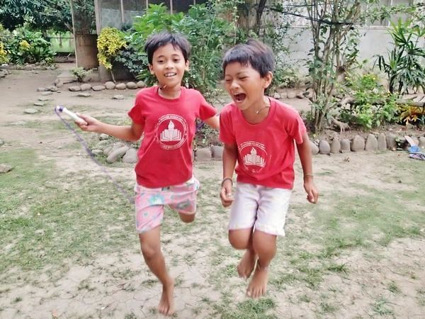 2人でなわとびをするジェリカとジョイジョイ。この2人、いつも一緒で本当に仲良しです。