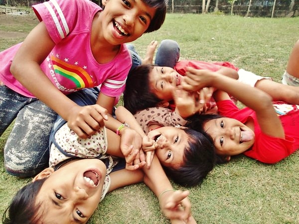 そうじし終わった後の庭で、女の子たちが転げまわって遊んでました。いやー、平和です。