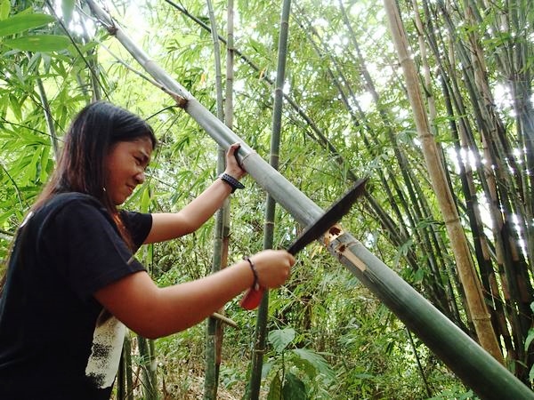 ロジャー、アナマリス、ミッチーの3人と一緒に山に竹を取りに行きました。