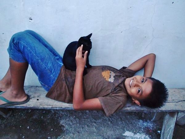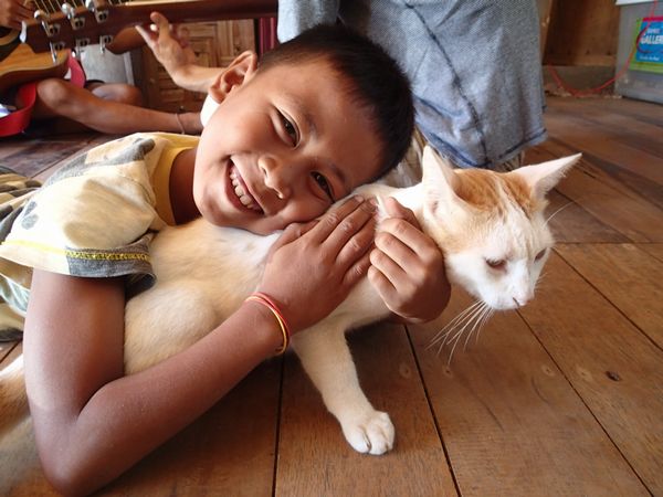 猫たちも犬たちもいい具合にこどもたちに可愛がられています。ちょっと迷惑そうにも見えますけどね。(笑)