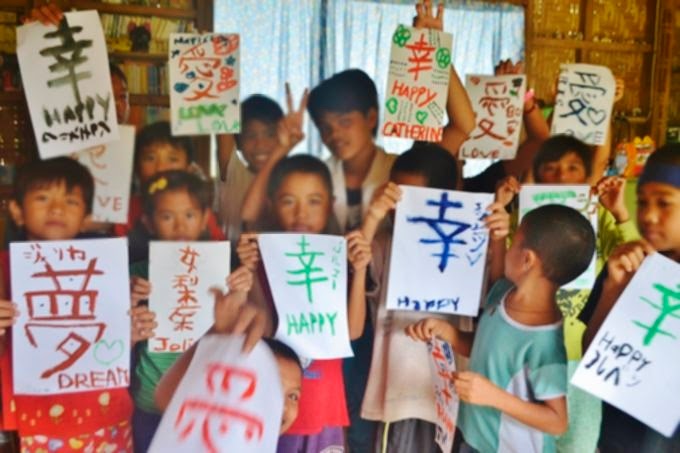 見本とその漢字の意味を教え,子どもたちに好きな文字を書いてもらいました.