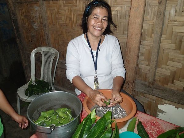 やたら長い名前ですが、要するに「酢でしめた小魚をマンゴーの葉でくるんで蒸し焼きにしたもの」です。