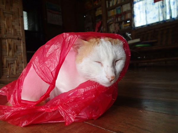 あまりの寒さに猫もビニール袋に入ってます。(笑)