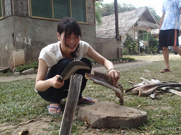 やっぱり慣れないナタで作業をするのが難しいらしく、