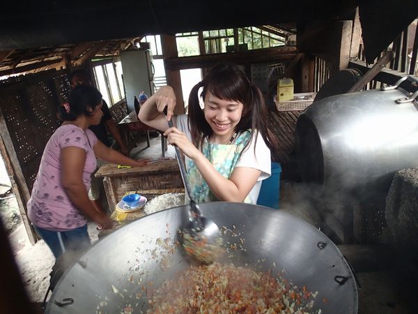 メニューは炒飯。スタッフ含め約30人分のごはんを作るのは、私もビジター2人も