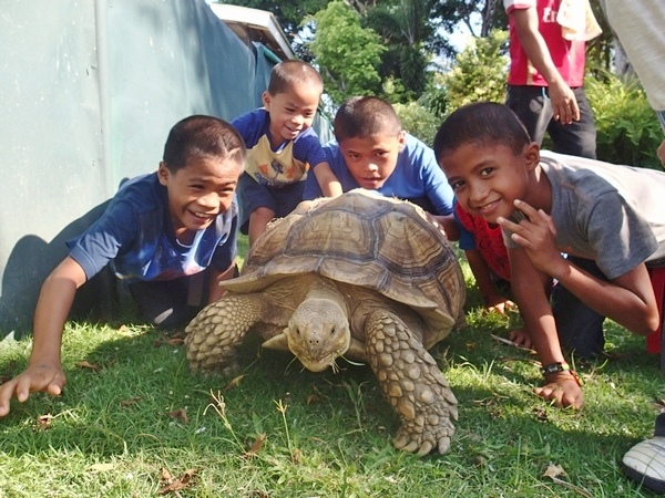 新しくゾウガメも入っていて、一緒に這い回ってこどもたちは大喜び!