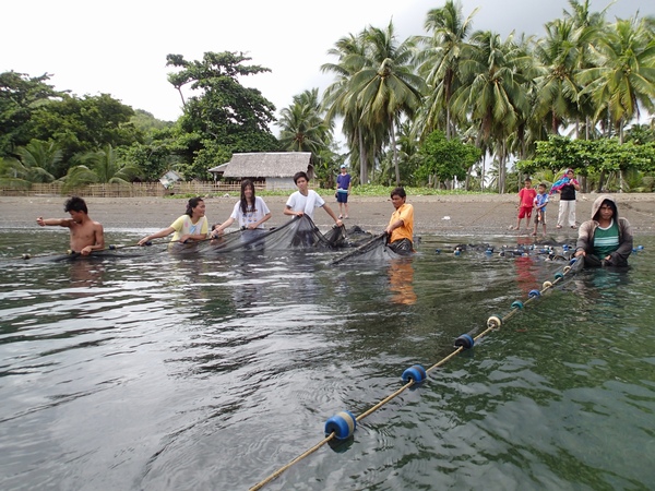 土曜日ということでみんなでウラワビーチに行くと、地元漁師たちが地曳網をしていました。