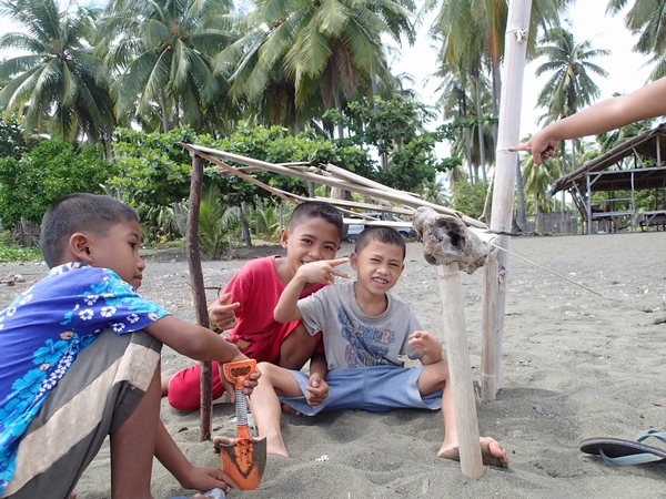 そしてこちらではホセが大きな流木を柱のように立てています。
