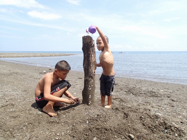 大潮の時期なので流木が多く、こどもたちはそれらを使ってクリエイティブに遊んでいます。