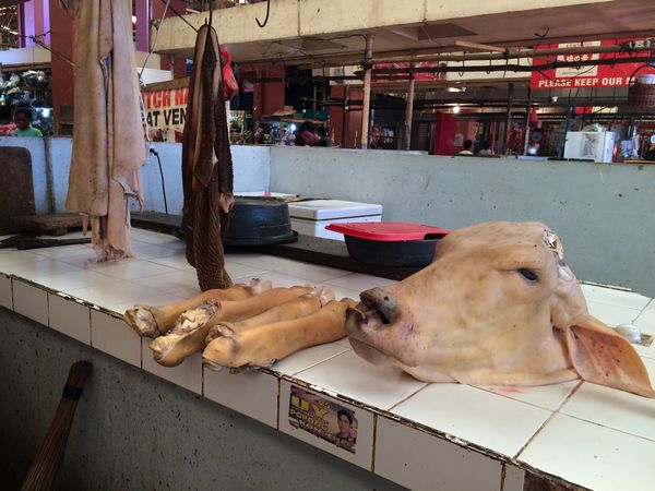 一番驚いたのが牛の手や脚、皮などの部位がそのまま売っていること。