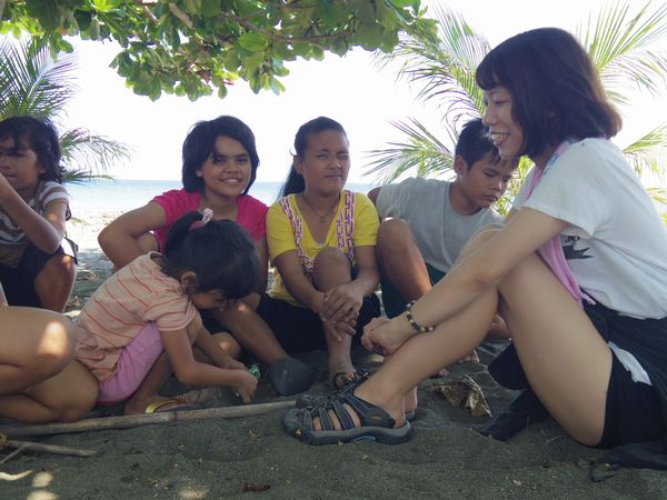 女の子たちは、砂浜に座り込んでおしゃべりタイム。