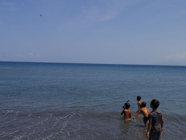男の子たちは、海へと飛び込んでいきます。