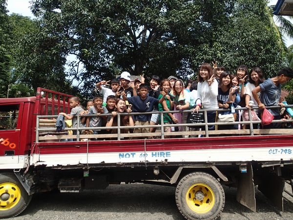 車に全員乗り切れないのでトラックを借りてみんなで荷台に乗っての遠足です!