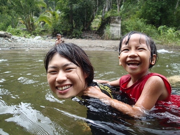 約束通り学生たちとこどもたち、全員で渓流マプティに行きました。