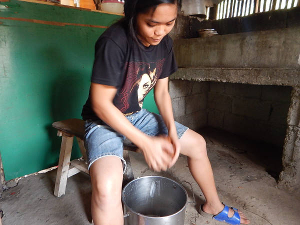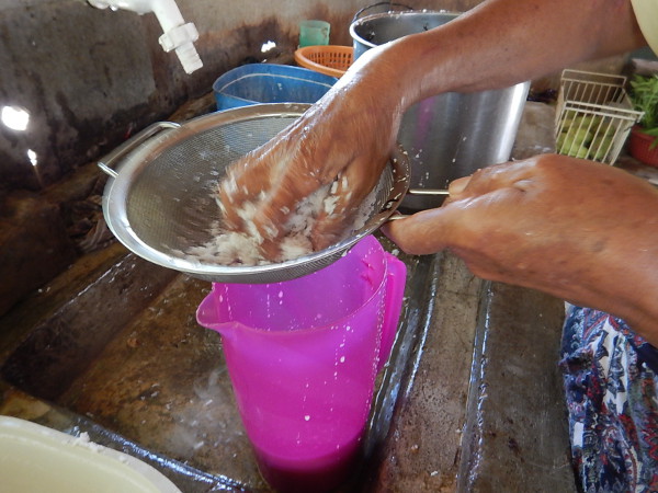 次にクリスティンが削ってくれた果肉からココナツミルクを搾り出していきます。