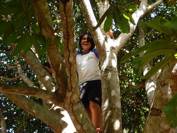 なんと裏のマンゴーの木の高いところまで登っていました(笑)