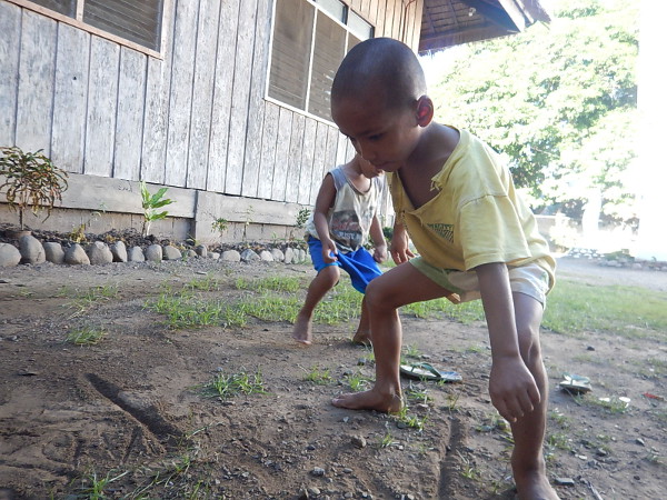 砂に線を描いて、ケンケンパ!のようなことをしていたと思ったら