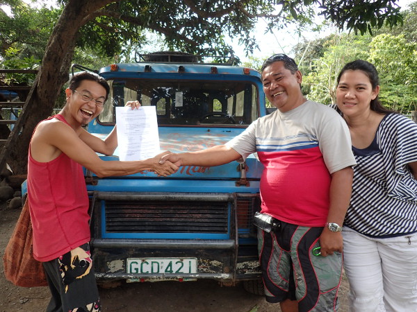 メルヴィンが売買契約書を作成して、それに私、オーナーさん、そして運転手のドドンがサイン。