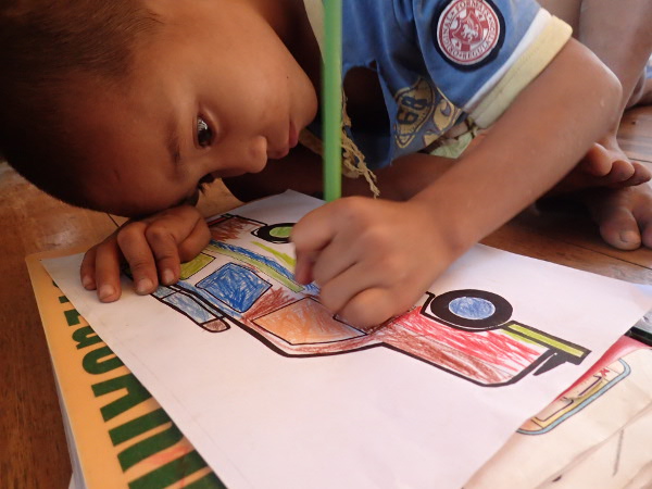 バドンが「この子にこんな集中力が?」というくらい一生懸命色を塗っています。