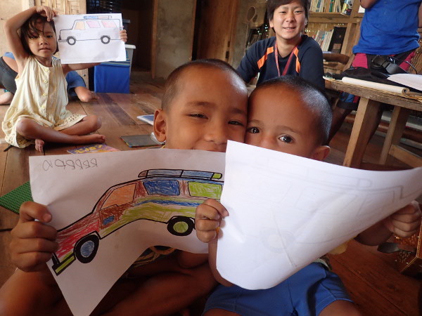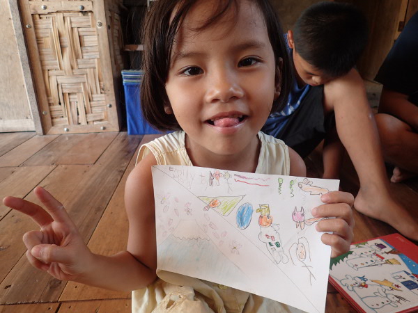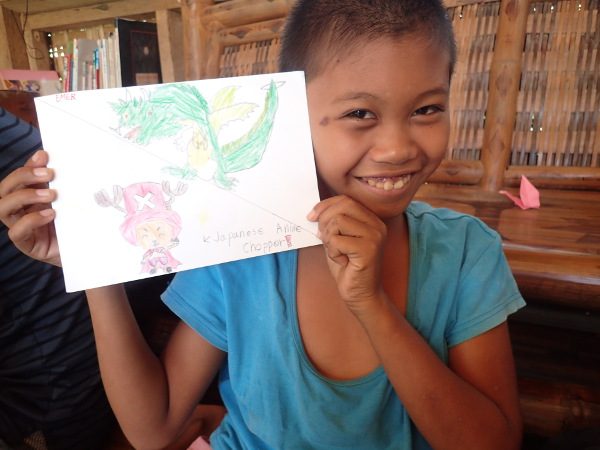 「買い物のおまけで、日本のこどもとHOJのこどもが半分ずつ絵をかいたカードをつけよう!」
